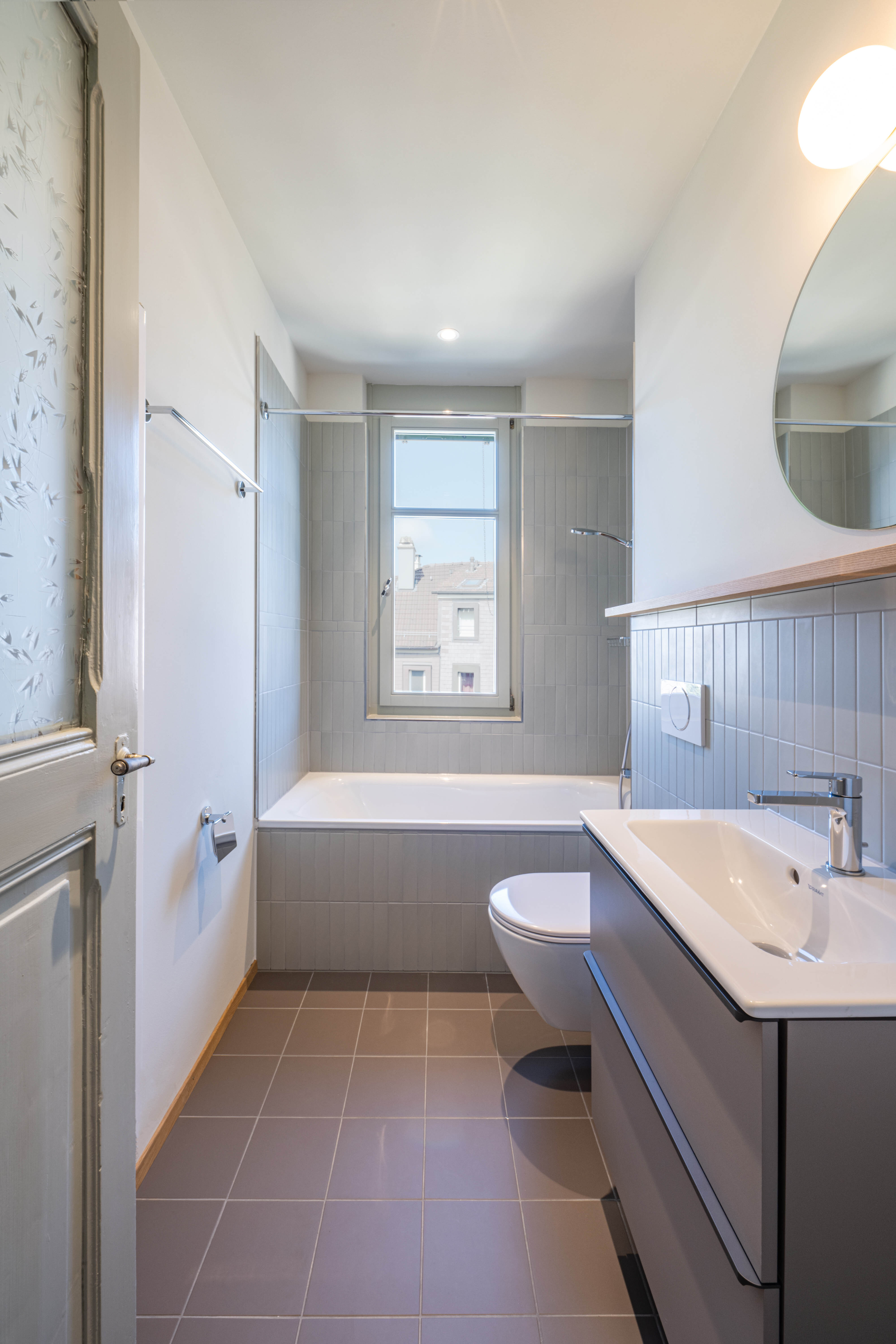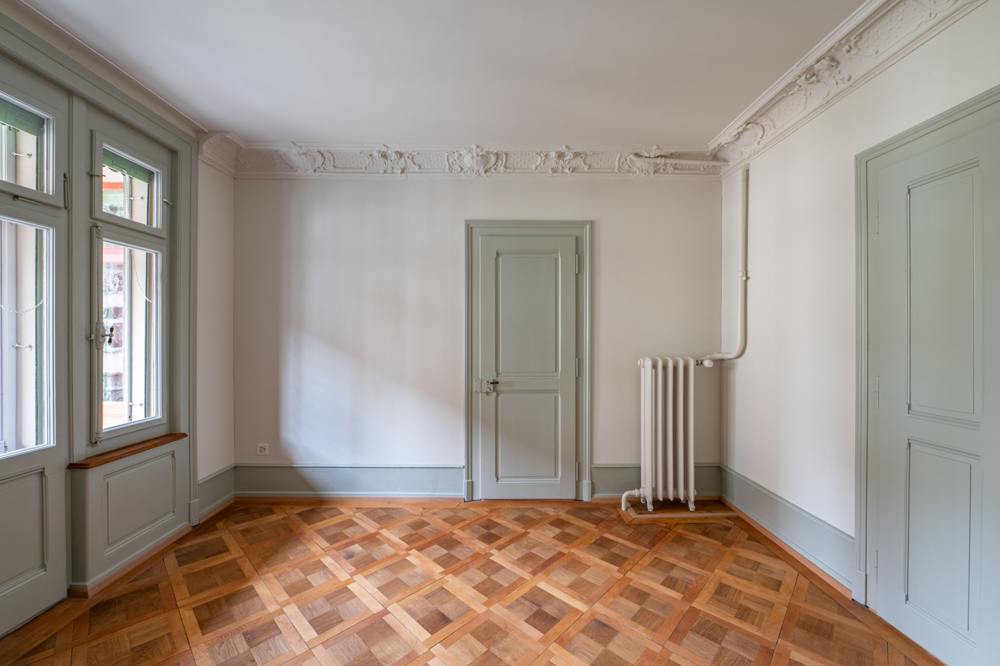 Die Gebäudesanierung wurde intensiv mit der Denkmalpflege der Stadt Bern erarbeitet. Im Dachgeschoss wurden zwei Studios zurück gebaut, daraus entstand eine neue Studiowohnung mit Dacheinschnitt. Die darunterliegenden Wohnungen wurden komplett saniert.