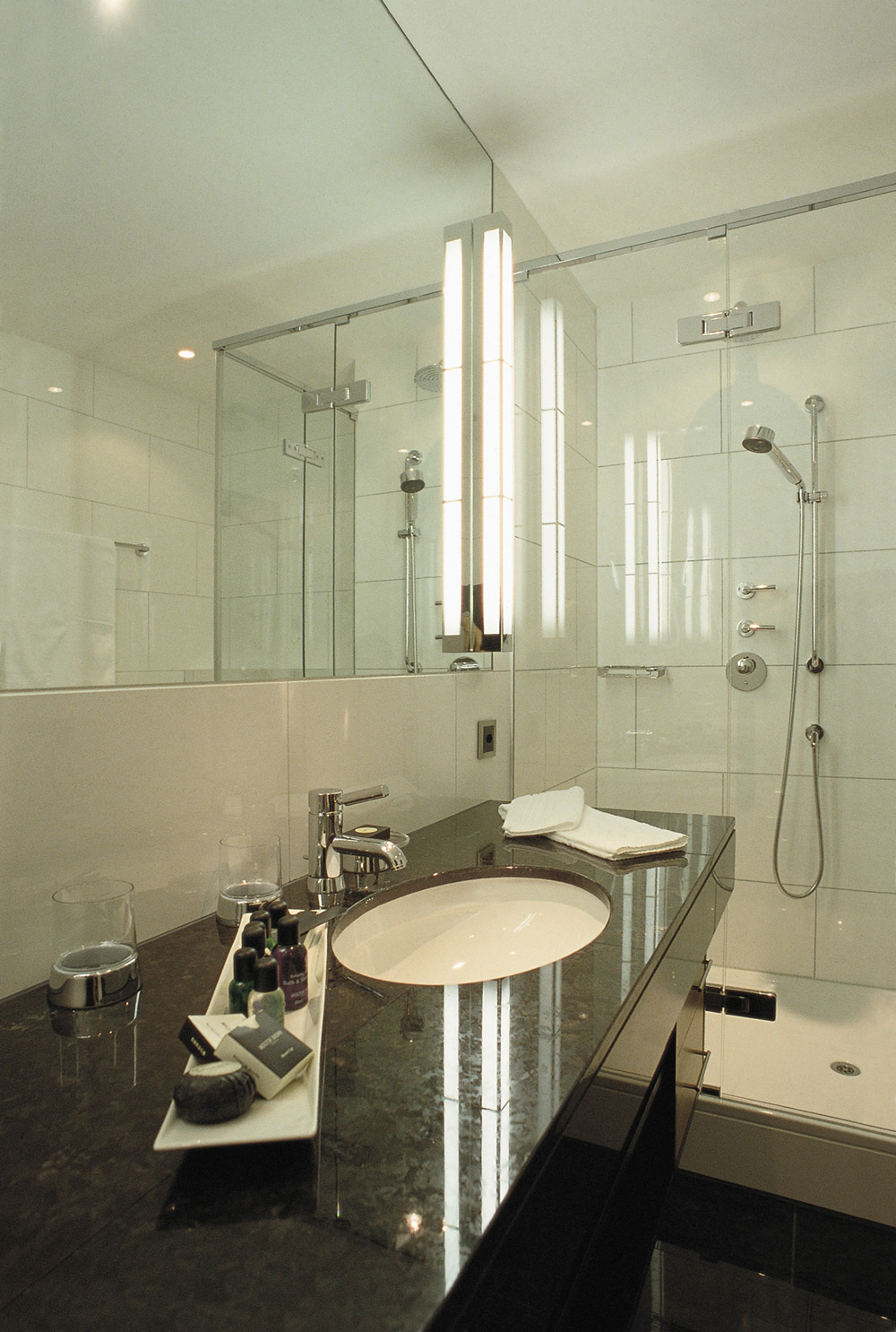 Bei der Gesamtsanierung der fünf Obergeschosse ging es uns in erster Linie darum, erhaltenswerte Baustruktur hervorzuheben und wo sinnvoll, in den ursprünglichen Zustand zu versetzen. Die Spuren verschiedener Bauinterventionen in den neunziger Jahren zwischen Neubau und Totalsanierung sollten lesbar und nachvollziehbar bleiben und der historische Bau mit Respekt und Würde behandelt werden.