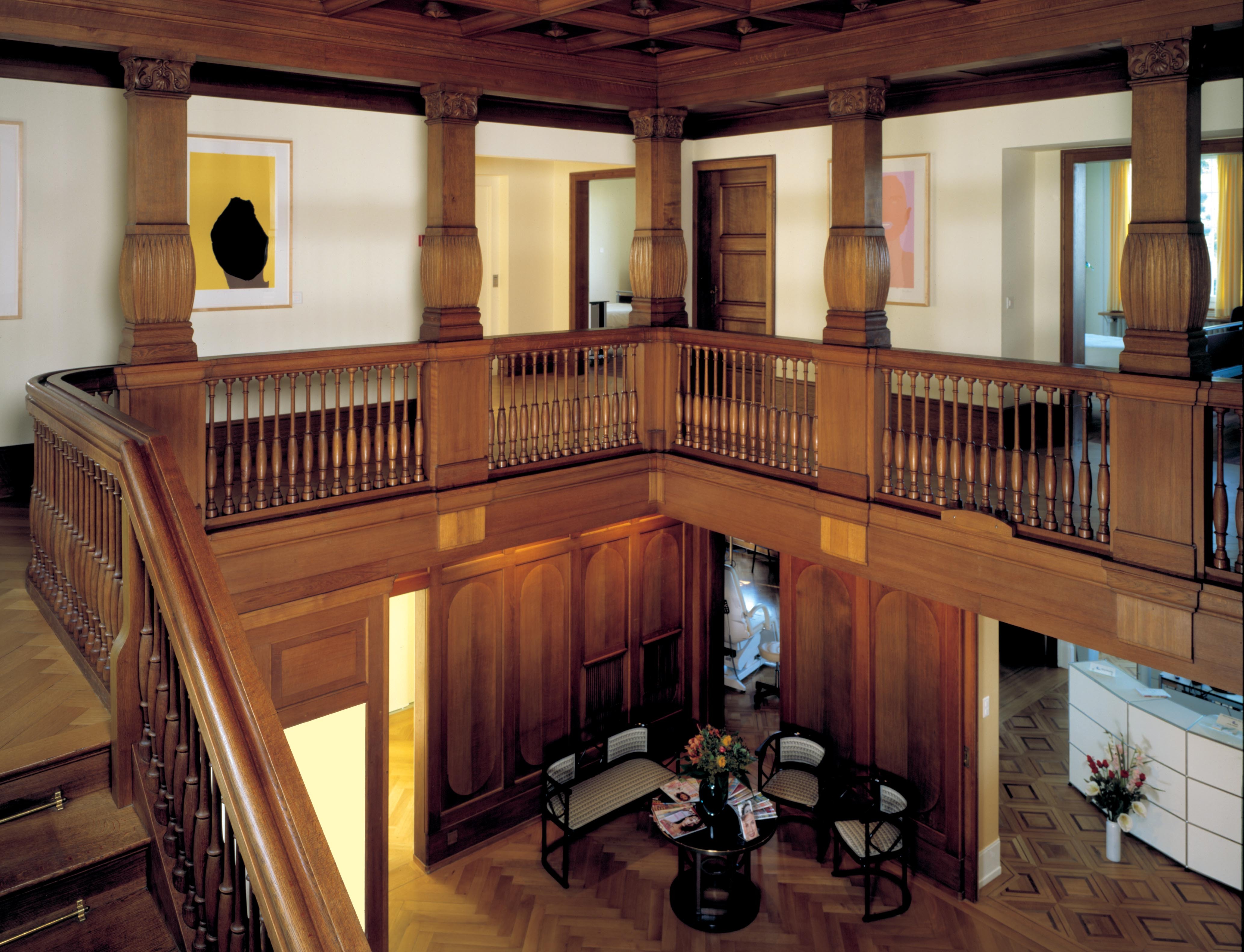 Ausbau einer denkmalpflegerisch geschützten Villa (Baujahr 1917) zu einer Klinik für plastische Chirurgie. Das neue Nutzungskonzept kann ohne störende Eingriffe in die existierende Raumstruktur des Erd- und 1. Obergeschosses mit der repräsentativen Eingangshalle integriert werden. Die wertvolle Ausstattung bleibt dadurch vollständig erhalten.